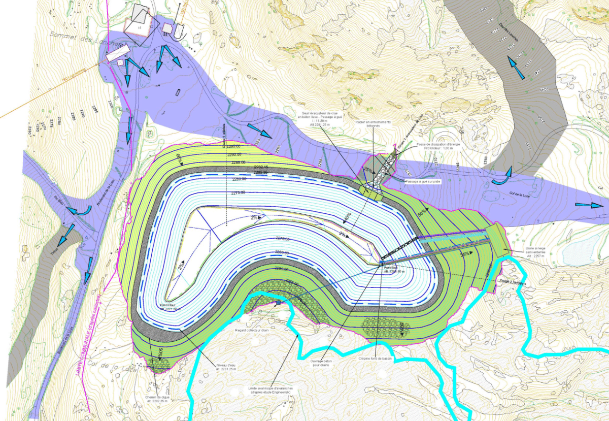 Afin de garantir la venue des championnats du monde de ski à Méribel en février 2023, un projet de retenue collinaire a été mené par la S3V sur le site du Col de la Loze.