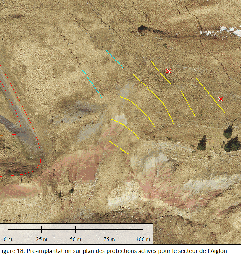 - Définition des zones à traitées (par priorité) et proposition de solutions adaptées en fonction de la phénoménologie : de rondins ou banquettes par exemple pour parer au phénomène de reptation, de claies ou de déclenchement préventif pour les avalanches…